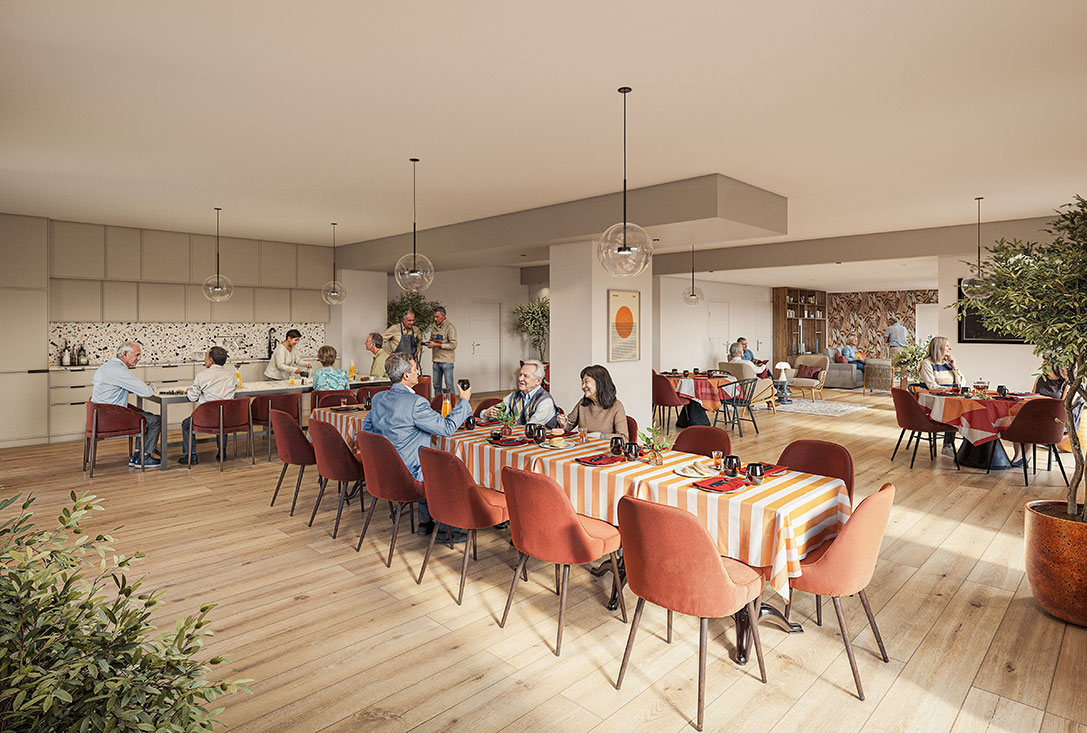 L’ensemble est complété par des espaces communs dédiés au bien-être et à la convivialité, créant un environnement chaleureux et dynamique pour les résidents : un salon chaleureux pour des moments de partage, une cuisine aménagée idéale pour les ateliers gourmands, une salle d’activités pour découvrir de nouvelles passions et une salle de sport pour entretenir sa forme. Une salle dédiée accueille aussi des intervenants du bien-être pour un accompagnement personnalisé.
